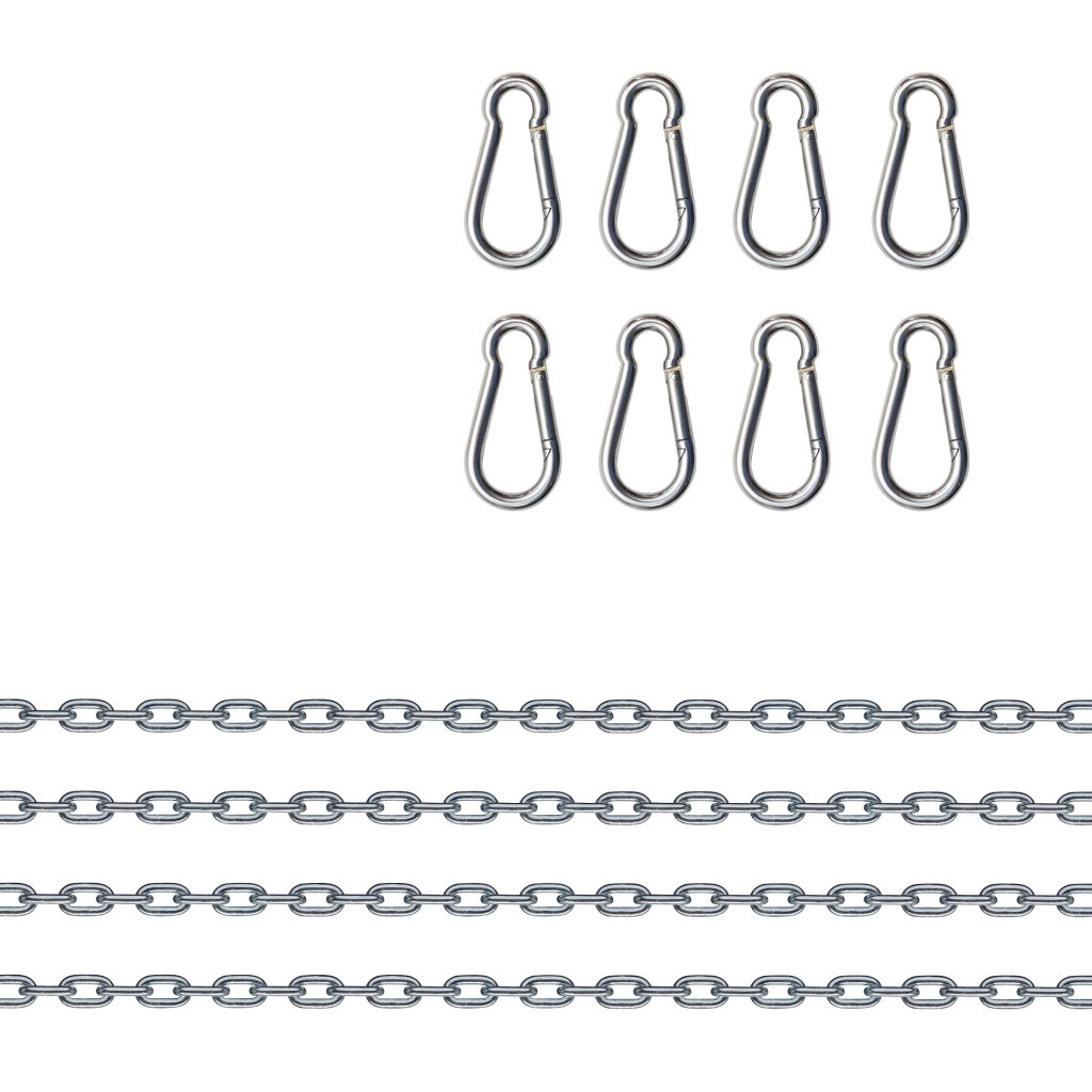 Fedezze fel a szabadtéri kalandok világát a 4 db láncot és 8 db fém karabinert tartalmazó szettünkkel! Ezek a minőségi termékek ideális társai minden helyzetben, legyen szó túrázásról, kempingezésről vagy éppen a ház körüli kreatív projektekről. Ne hagyja ki ezt a lehetőséget, hogy egy igazán sokoldalú szettel gazdagítsa felszerelését!