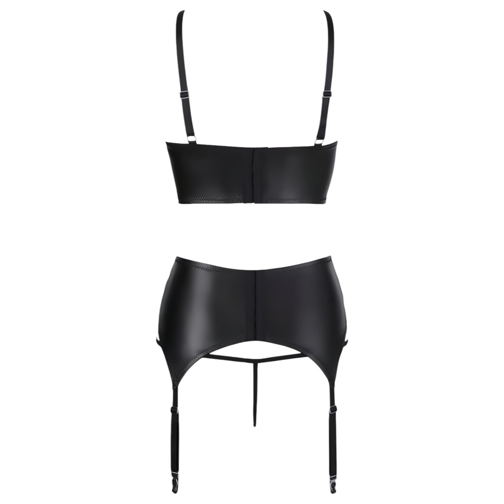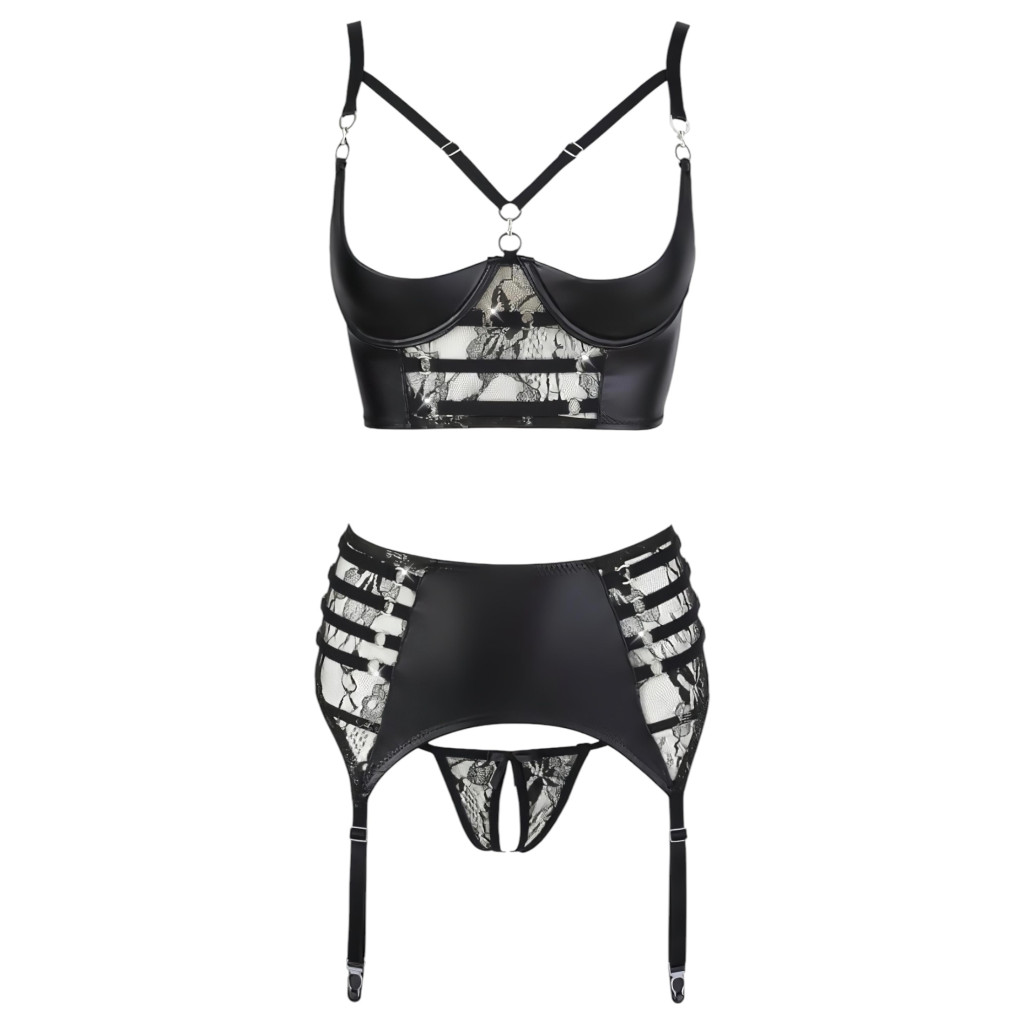 Abierta Fina - szikrázó pántos-csipkés fehérnemű szett (fekete)