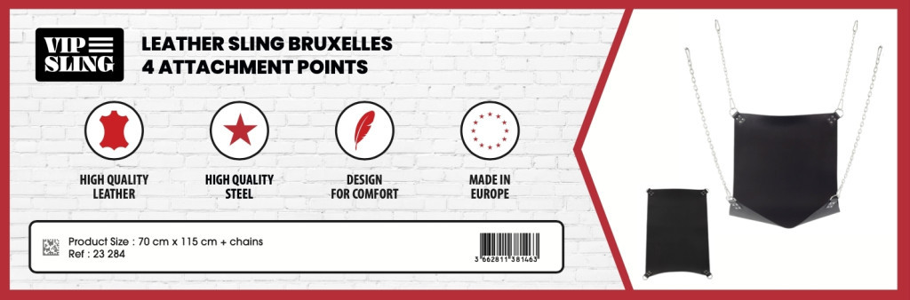 Fedezd fel a szenvedély és a stílus új dimenzióját a Brüsszeli bőr slinggel! Kiváló minőségű, olasz marhabőrből készült, erős fémgyűrűkkel ellátott, 70 x 115 cm-es méretével pedig tökéletesen illeszkedik az intim pillanatokhoz. Elegancia, tartósság és kényelem egyesülnek egyetlen luxus termékben!