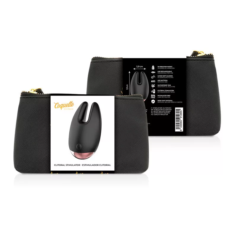Fedezd fel a vágyakat a COQUETTE CHIC DESIRE klitorális stimulálóval! Ez a prémium fekete-arany kényeztető, amely érzéki tapintásával és elegáns dizájnjával minden pillanatot felejthetetlenné varázsol. Csábító élményekre és intenzív orgazmusokra vágyó nőknek készült. Élvezd a luxust!
