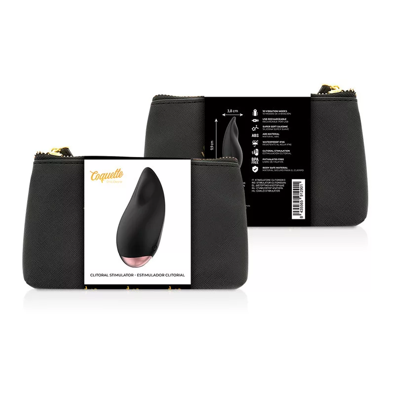 Fedezd fel a COQUETTE CHIC DESIRE csábító világát! Ez a fekete-arany klitorális stimulátor fenséges élményeket ígér, amelyek felébresztik az érzékeidet. Kifinomult dizájnja és izgató funkciói garantálják a felejthetetlen pillanatokat. Éld át a gyönyört, amit mindig is szerettél volna!