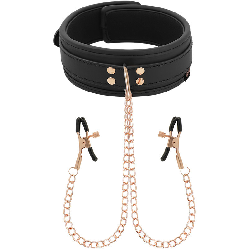 Fedezd fel a vágyak birodalmát a COQUETTE CHIC DESIRE FANTASY vegán bőr nyaklánccal, mely az izgató mellbimbócsipeszekkel van összekötve egy elegáns fém lánccal! Ez a különleges kiegészítő nemcsak a szenvedélyt, hanem a biztonságot is garantálja, ideális választás a kezdők és a tapasztaltabb játékosok számára egyaránt.