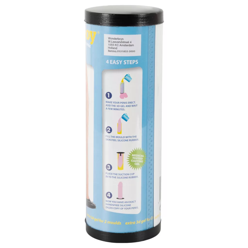 Élethű műpénisz mást készíthetsz saját péniszedről, a szett segítségével. A csomag tartalma: Kiváló minőségű bőrtapintású 2 x 3D gél - amely orvosilag tesztelt, szilikon gumi, 1 pár műanyag kesztyű, erekció tartó pánt, különleges felületű szilikon mandzsetta, spatula és részletes használati utasítás. Elegendő a pénisz méretét 20cm hosszúságúra és 4cm átmérőjűre megnövelni. Mellékelt tapadókoronggal.
