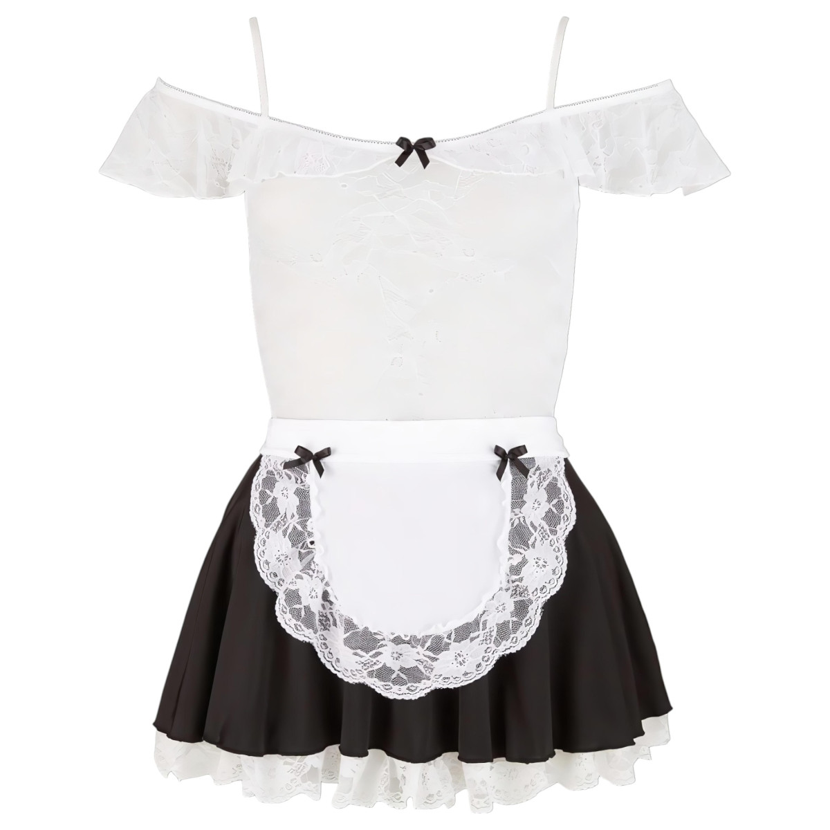 A ruha felső része rugalmas, fehér virágmintás csipke. Pántja gumis, ami vállra ejthető.