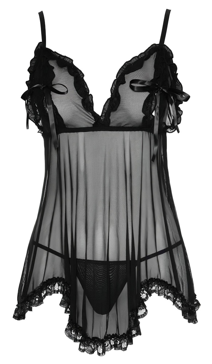 Cottelli - Lenge, fodros babydoll (fekete)