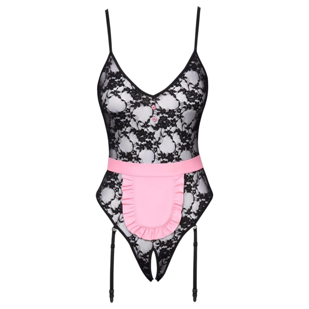 Cottelli - átlátszó szobalány jelmez (fekete-pink)