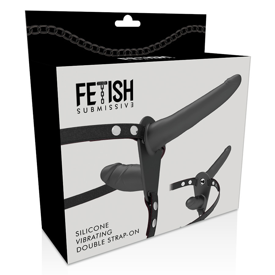 Fetish – dupla behatolású fekete vibrátor harnesszel