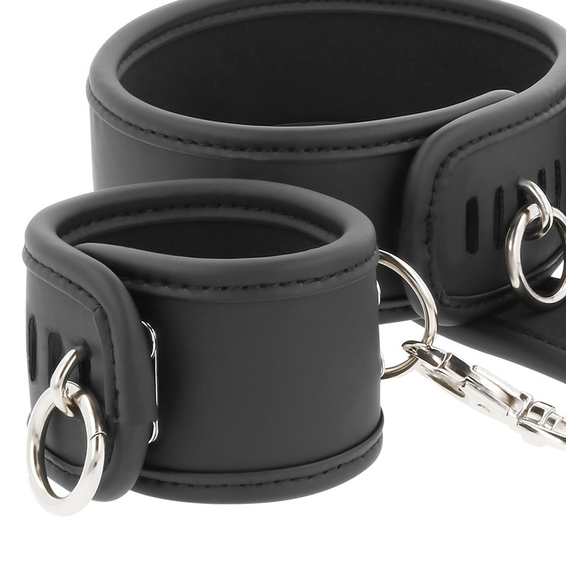 • Biztonságos rögzítés: A nyak- és csuklópántok közötti összekötő lánc visszatartja az alárendeltet anélkül, hogy bármilyen kényelmetlenséget okozna.