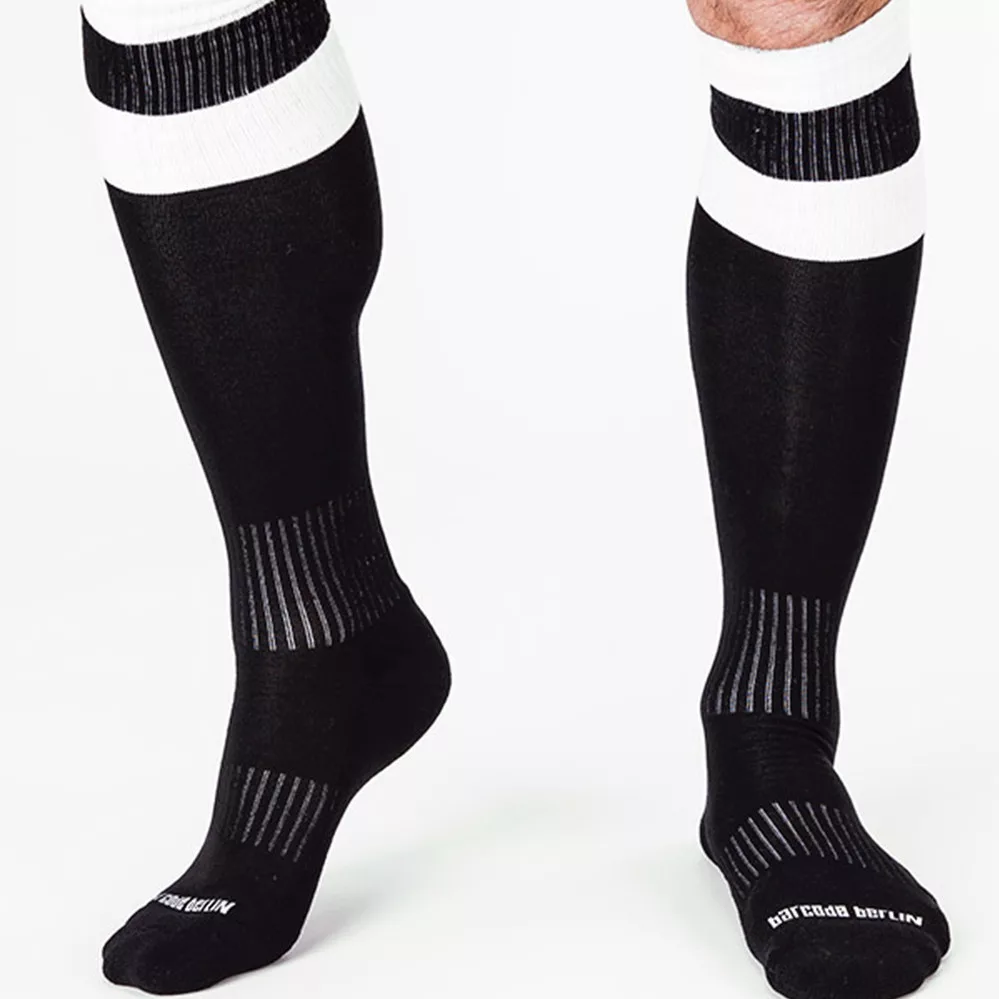 Fedezd fel a játék szellemét a Barcode Berlin fekete focis zoknijával, melyek fehér csíkjaikkal igazi stílusikonokká varázsolnak! Tökéletes kényelem és tartósság – éld át a sportos érzést minden lépésnél!