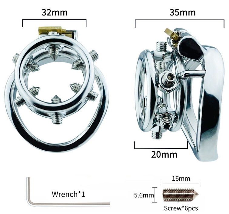 Fedezd fel a vágyfokozás új dimenzióját az Annel Pics chastity cage segítségével! Ez a prémium intim kiegészítő lenyűgöző fém kialakításával és a testre szabható gyűrűméretekkel garantálja a maximális kényelmet és kontrollt. A hatékonyan alkalmazható 6 állítható tüske segít a kemény erekciók visszafogásában, miközben a nyitott vég lehetőséget teremt a fantáziák szabadon engedésére. Éld át a feszültséget és a kísértést, amit ez a különleges eszköz kínál! Idealitás, vágy és izgalom egyetlen termékben!