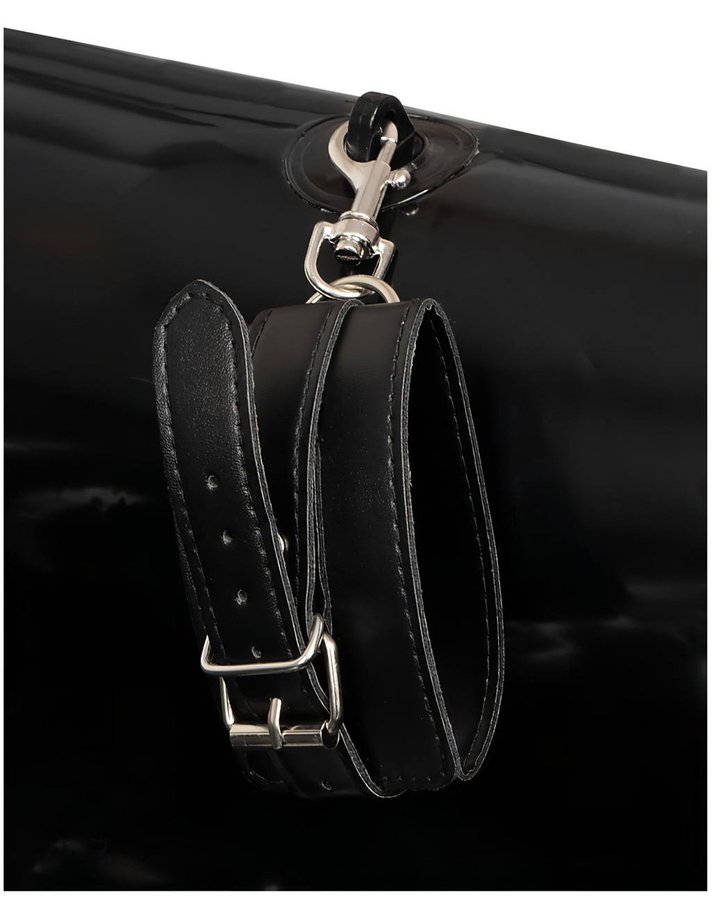 A legjobb része pedig a 4db állítható méretű bilincs, melynek köszönhetően partnered nem szabadulhat a legsikamlósabb jelenetek elől!