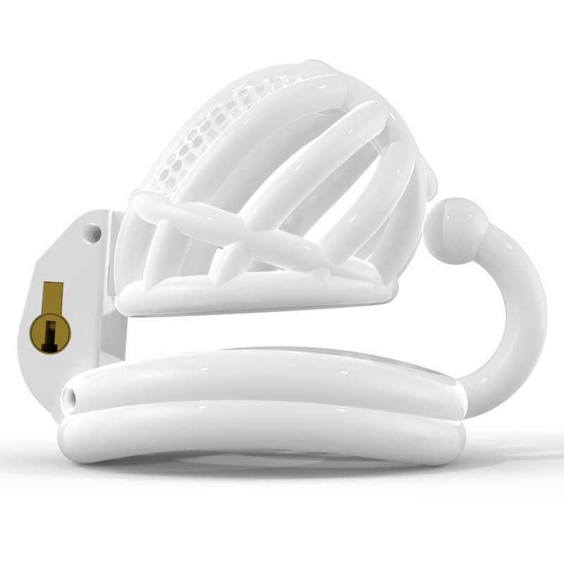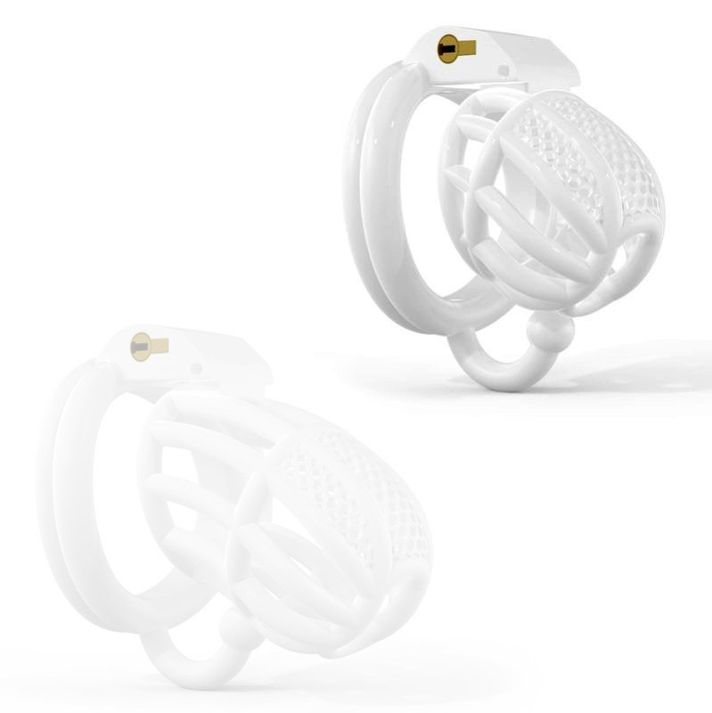 Fedezd fel a vágy titkos világát a White Chastity Cage-dzsel! Ez az elegáns, 5,5 cm hosszú és 3,1 cm széles fehér zár alagút nemcsak a kontroll érzetét nyújtja, hanem a szenvedély és izgalom új dimenzióit is megnyitja. Négy különböző méretű rögzítőgyűrű (40, 43, 46 és 50 mm) garantálja a tökéletes illeszkedést, míg a praktikus kulcsokkal könnyen kezelheted a mókát. Légy része egy izgalmas utazásnak, amely fokozza az intimitást és a felfedezést!