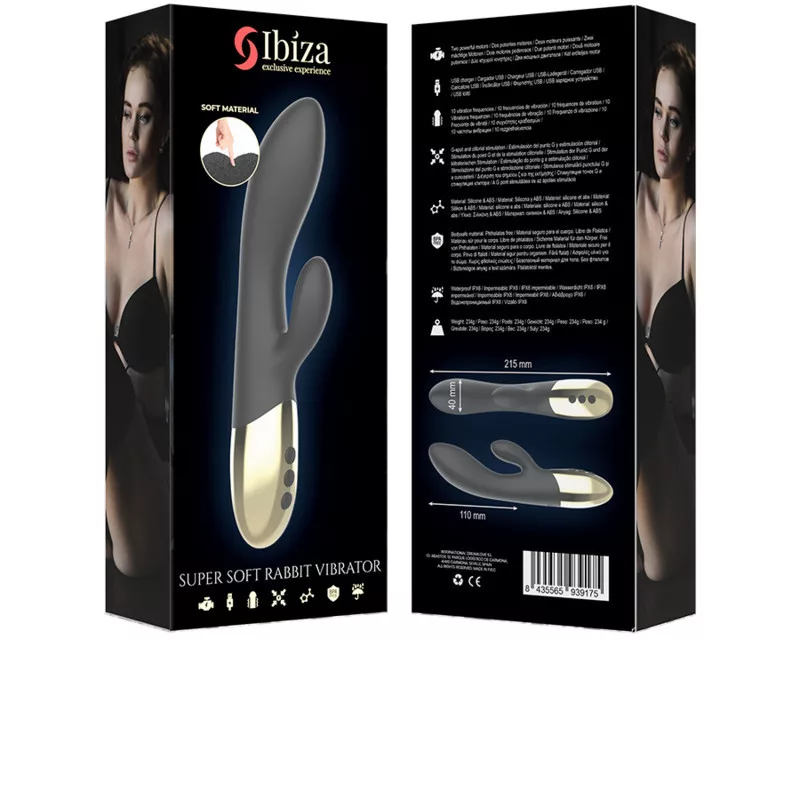 Hozd el a szexuális élvezetek varázsát bárhova! A kritikusok által méltatott rabbit vibrátor most megújult! A legpuhább, testbarát szilikonból készült, lenyűgöző fekete és arany színkombinációban, az IBIZA SUPERSOFT rabbit vibrátor™ a tökéletes dupla akciós masszírozó, amely lehetővé teszi, hogy elérd a vágyott csúcspontot. A G-pont és a csikló egyidejű stimulálásának lehetősége által tapasztalj meg intenzív izgalmakat, amelyek felszabadítanak minden elfojtott gátlást!