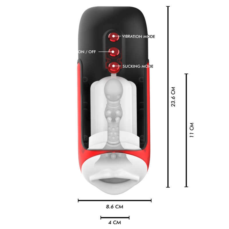 - Erős szívó rendszer: A maszturbátor erőteljes szívó funkcióval rendelkezik, amely fokozza a hatást, miközben maga az élmény új magasságokba emelkedik.