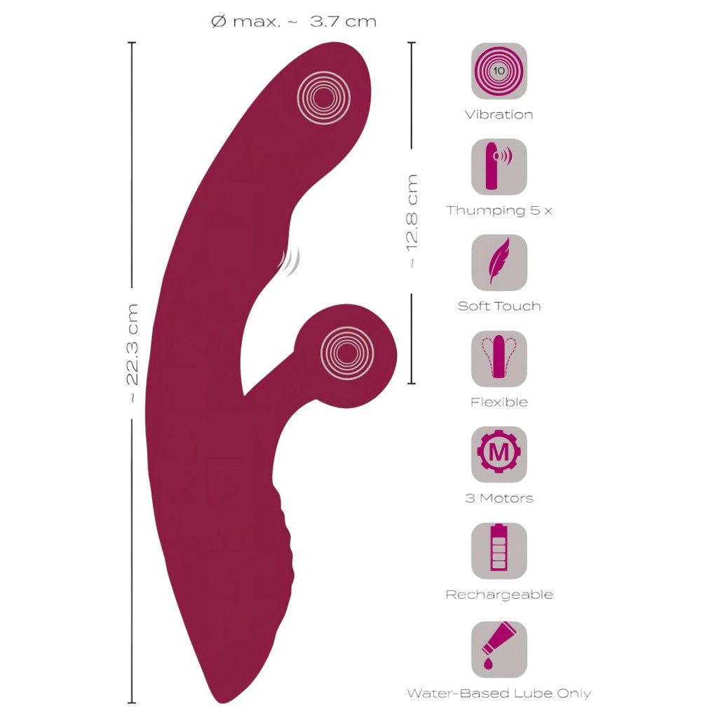Javida 2 Function Rabbit - akkus csiklókaros vibrátor (piros)