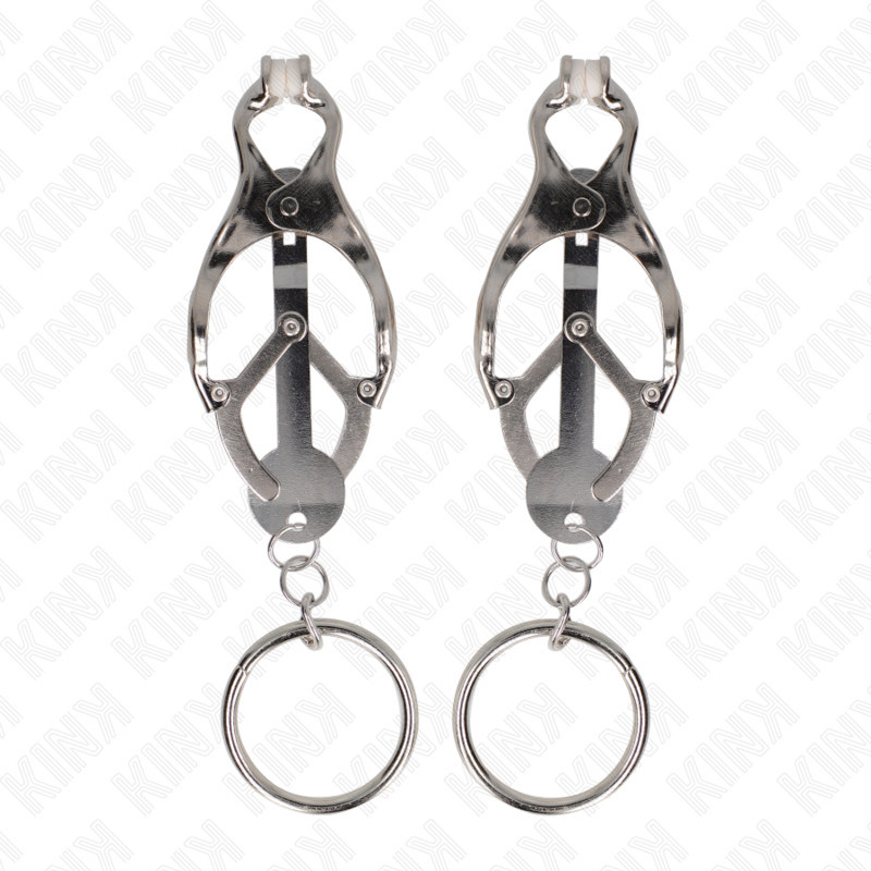 Fedezd fel az izgalmak új dimenzióját a KINK O-RING Japán Clover Mellbimbó Csipeszekkel! Elegáns ezüst dizájn, amely nem csupán a látványt, hanem érzékeid izgalmát is fokozza. Fokozd a szenvedélyt és a kellemes feszültséget: a precíziós csipeszek tökéletes egyensúlyt kínálnak az izgató stimuláció és a diszkrét elegancia között. Kényeztesd magad a prémium minőségű, különleges élményekért!