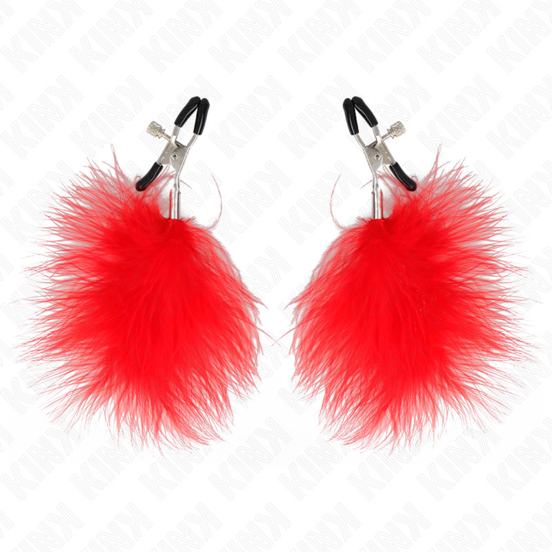 Fedezd fel a kényeztetés új dimenzióját a KINK Feather Nipple Clamp-pel! Ez a csábító, piros eszköz a feszültség és az izgalom tökéletes egyensúlyát kínálja. Hozd lázba érzékeidet, és tapasztald meg a felfedezés örömét – merj játszani az érzésekkel!