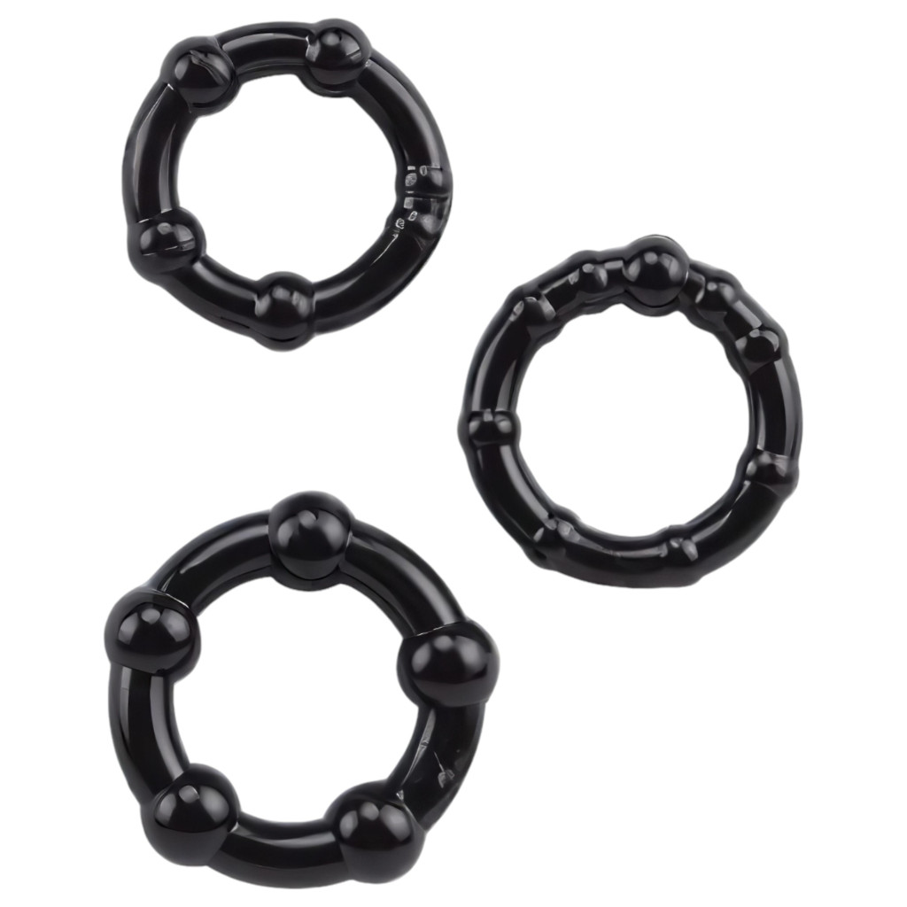 Lonely Stay Hard - péniszgyűrű szett - fekete (3 részes)