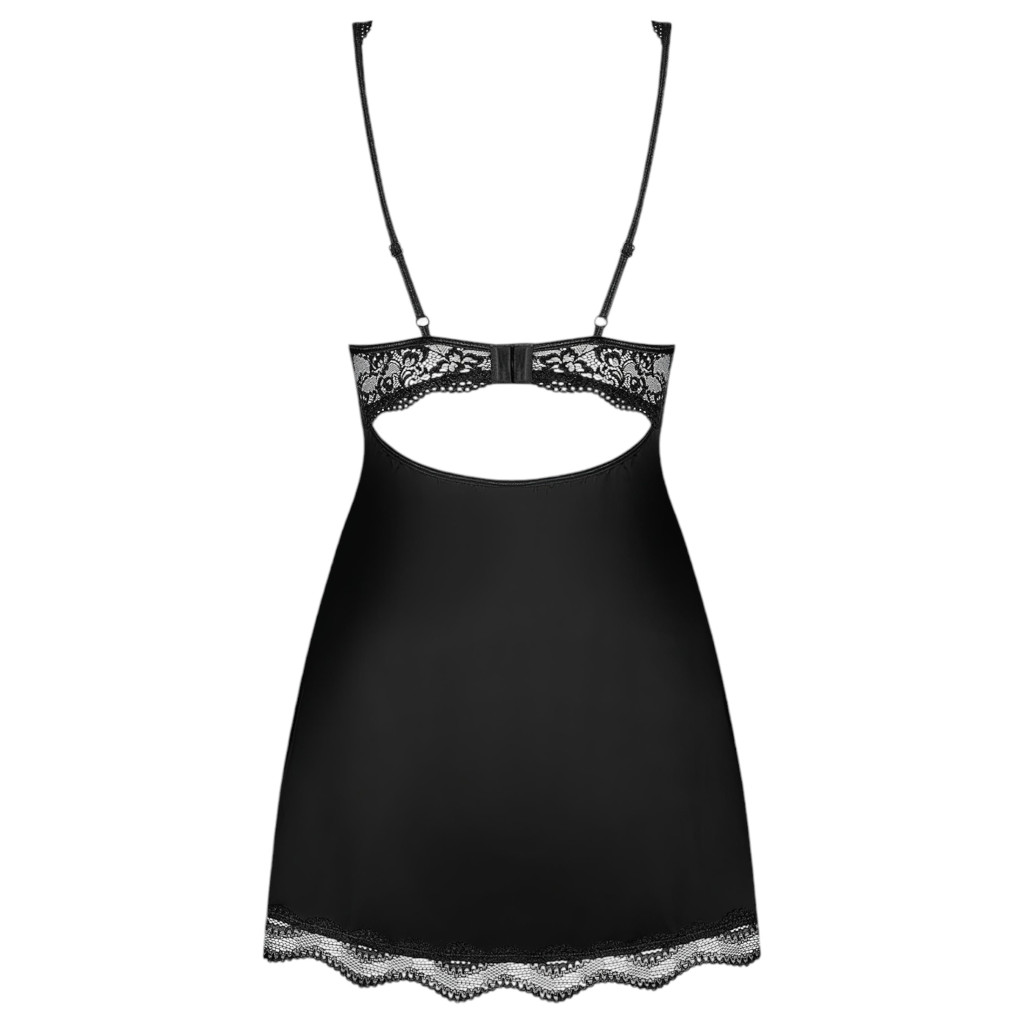 Obsessive Luvae - virágos, strasszos hálóing és tanga (fekete)