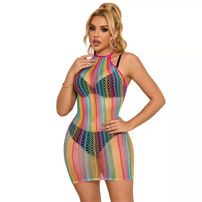 Merülj el az érzékek birodalmában a SUBBLIME Rainbow Fishnet Dress-szel! Ez a lenyűgöző, egy méretben elérhető halkisruházat nem csupán egy egyszerű ruha, hanem egy valódi fétis. Lélegzetelállító hálós kialakítása kiemeli minden görbédet, miközben szexi és tűzijátékos megjelenést kölcsönöz. Ajándékozd meg magad ezzel a prémium intim viselettel, és éld át a vonzalom új dimenzióit!