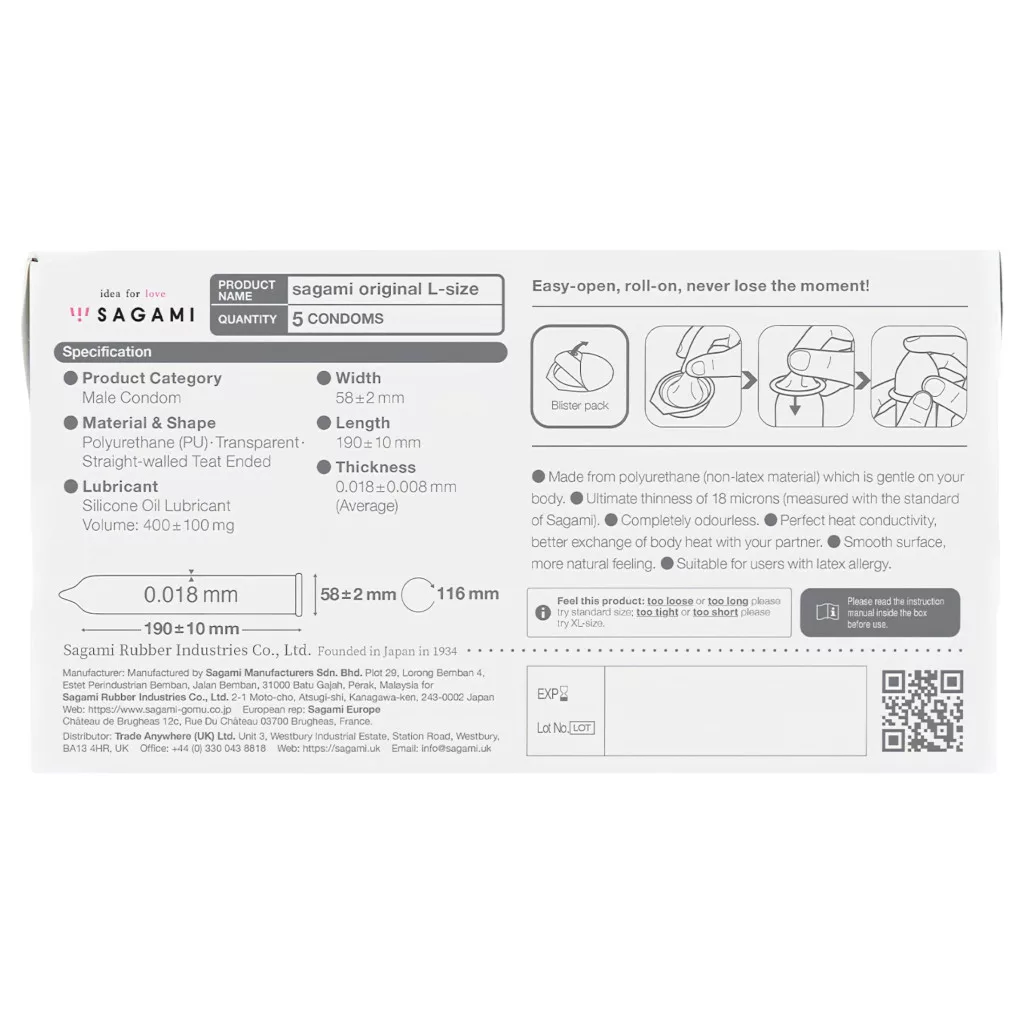 Terméktulajdonságok – Sagami Original 0.01 L-Size (5 db)