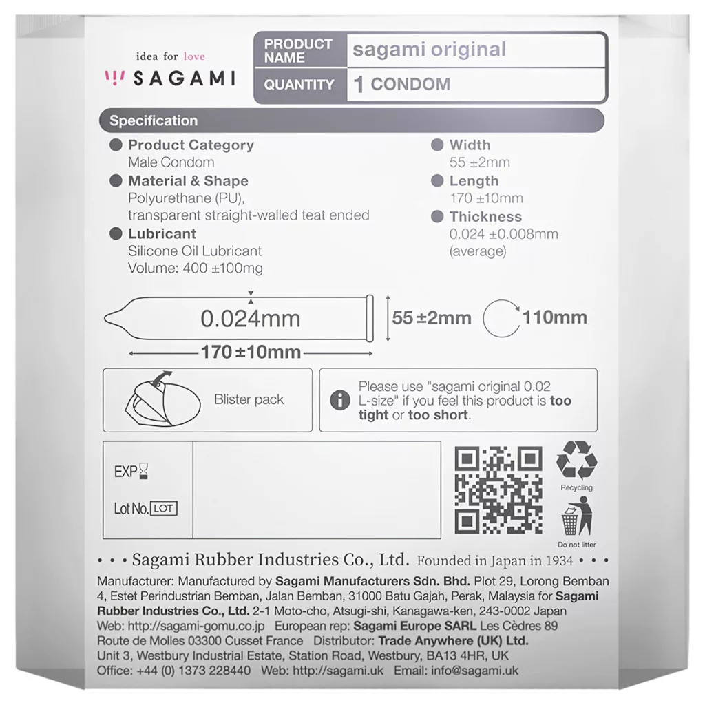 Terméktulajdonságok – Sagami Original 0.02 óvszer (1 db)