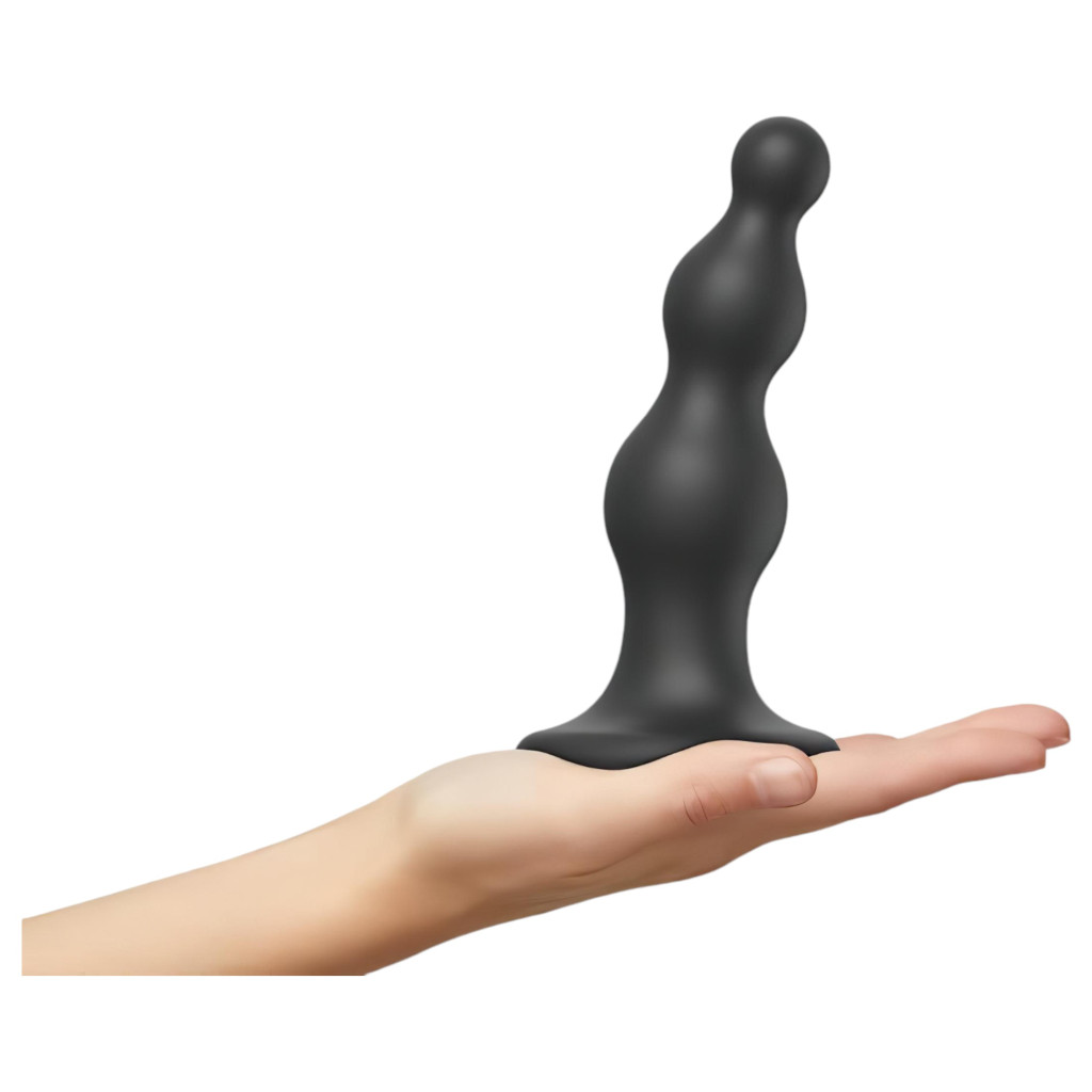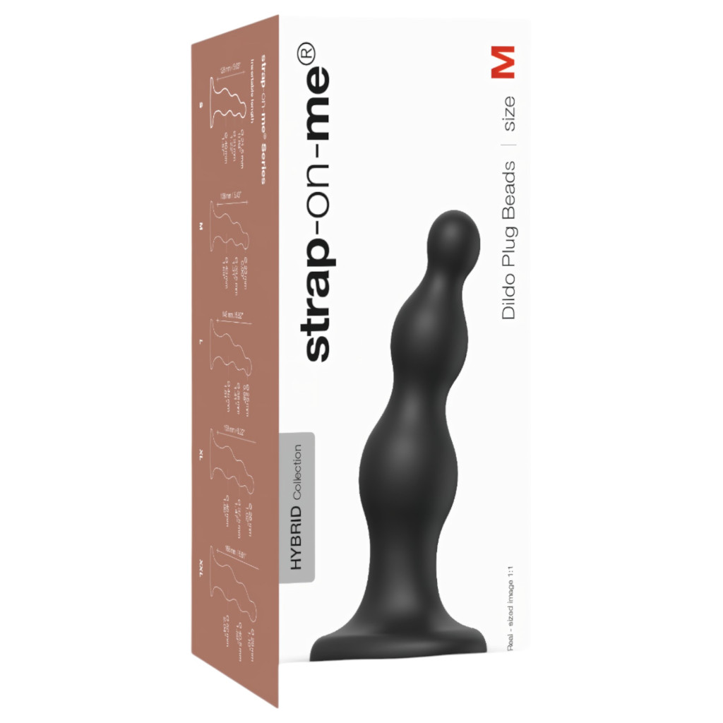 Strap-on-me Beads M - gyöngyös, tapadókorongos dildó (fekete)