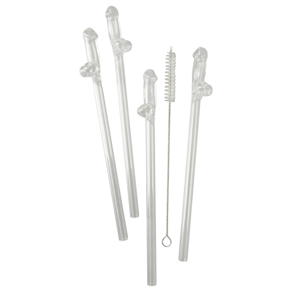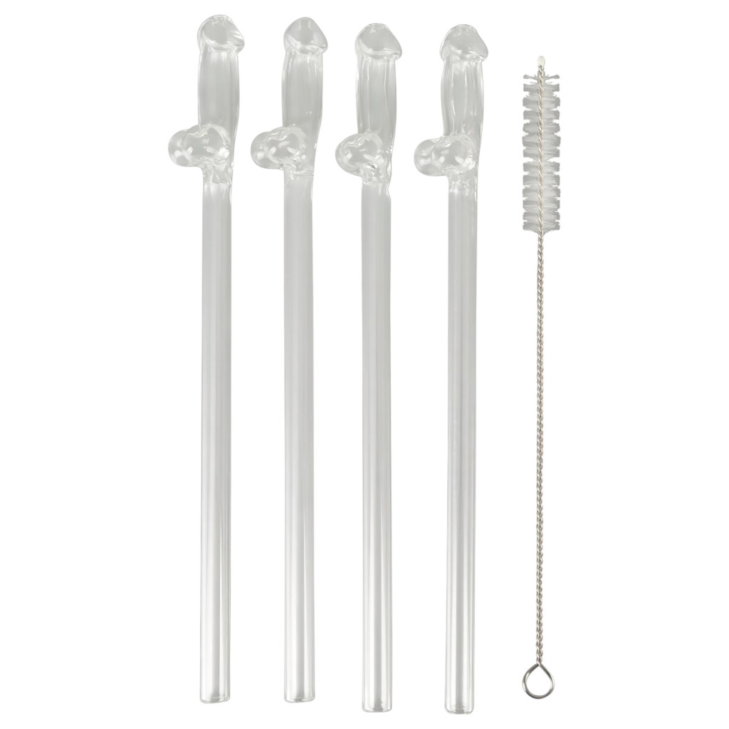 Straw Willy - péniszes üveg szívószál - átlátszó (4db)