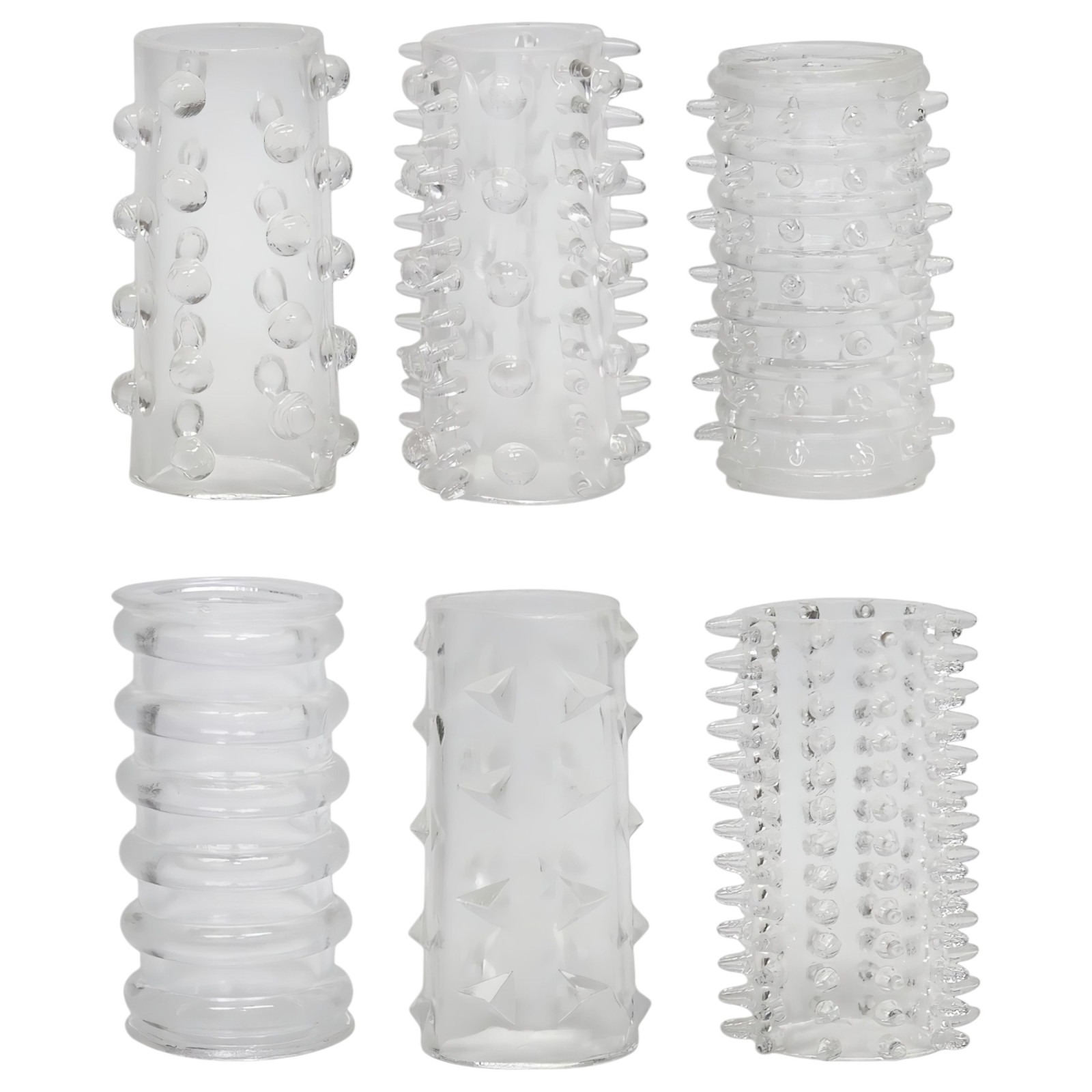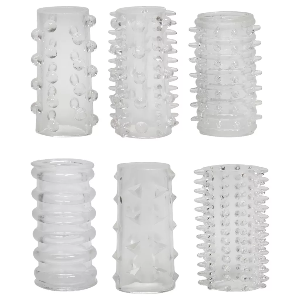 Áttetsző péniszgyűrűkészlet! A gyűrűk a bőrödre feszülnek és vérbőséget idéznek elő, ezáltal hímvessződ kemény lesz. Ezen kívül a számtalan kéjrovátka és gömböcske a hölgy legérzékenyebb szerelmi idegeit izgatja - igazodva a leggyengédebb mozdulatoktól a legvadabb hancúrozásig! 6 különböző gyűrűt tartalmaz a készlet a változatos szerelmi kalandokhoz.