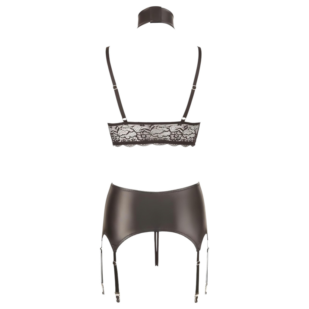 Cottelli Bondage - csipkés fényes fehérnemű szett (4 részes)