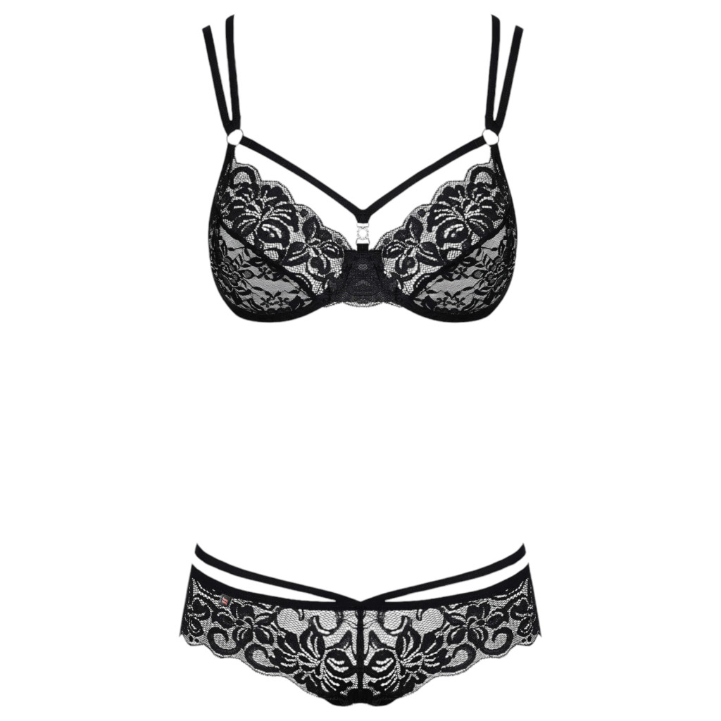 Obsessive 860-SET-1 - rózsás, csipke melltartó szett (fekete)