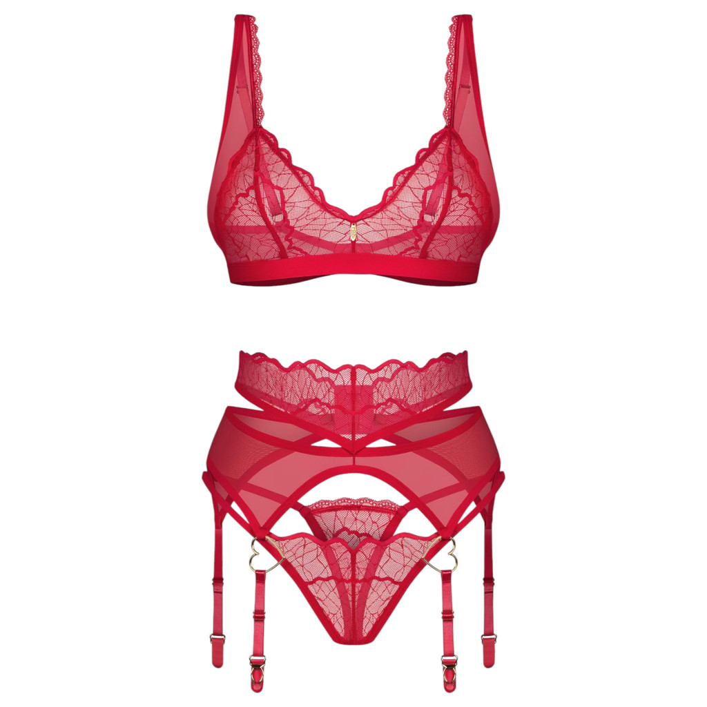 Obsessive Cupid Desir - csipkés fehérnemű szett (piros)