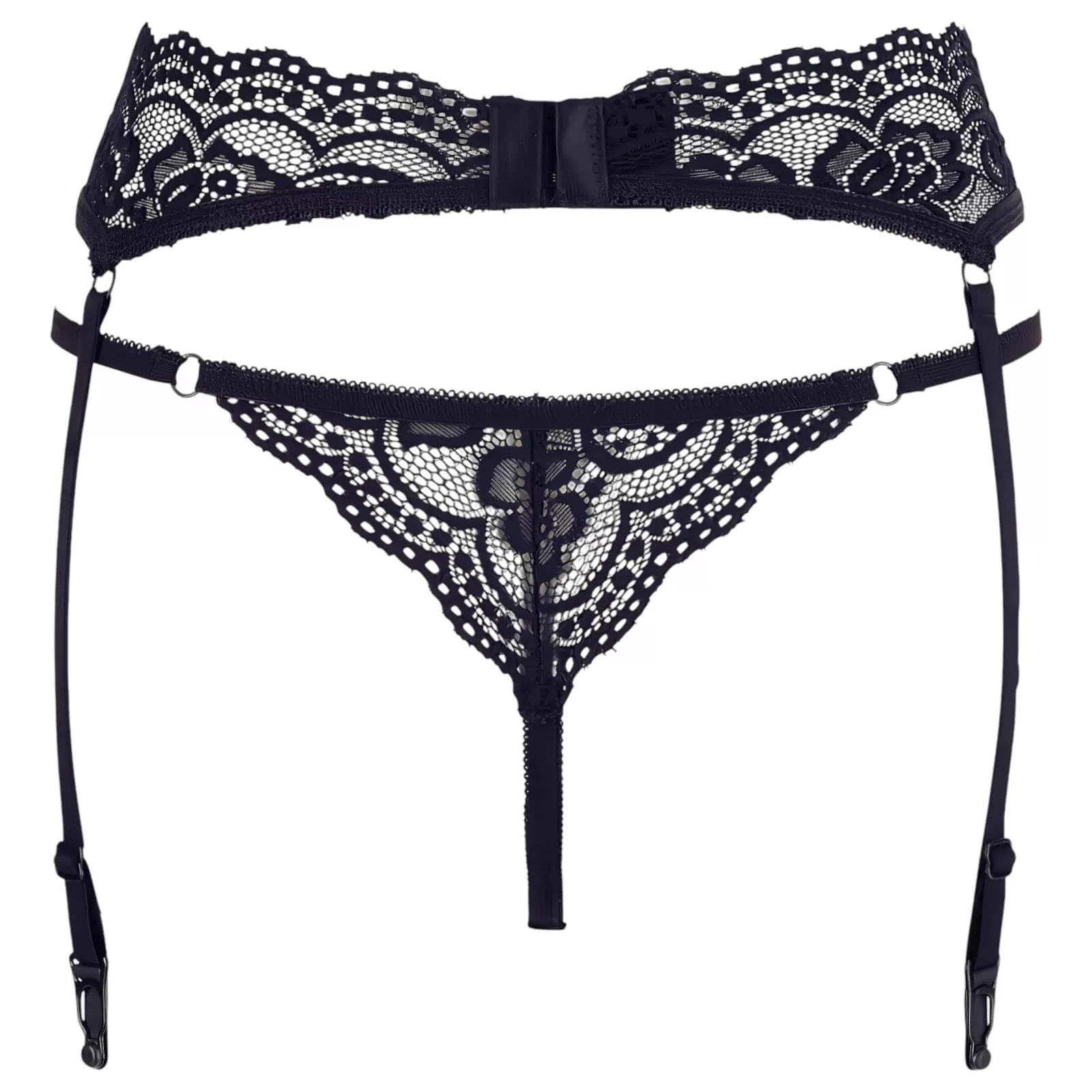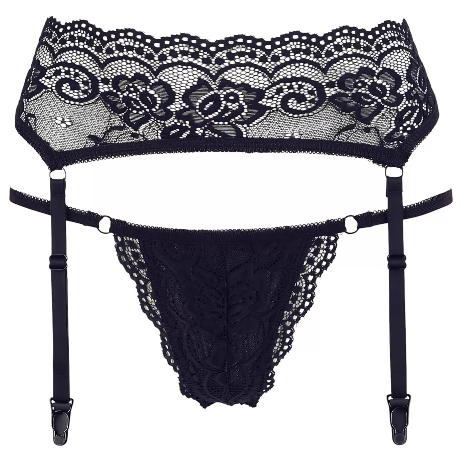 Cottelli - csipke harisnyatartó és tanga (fekete)