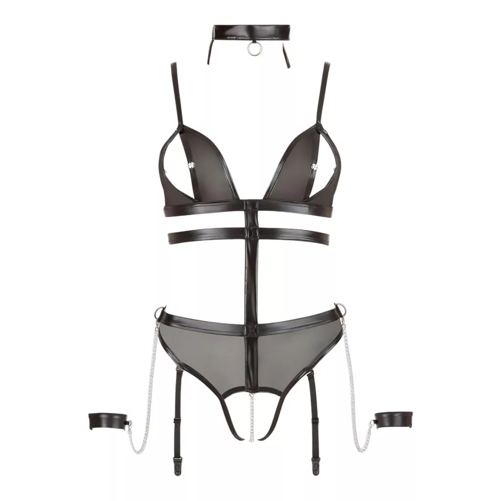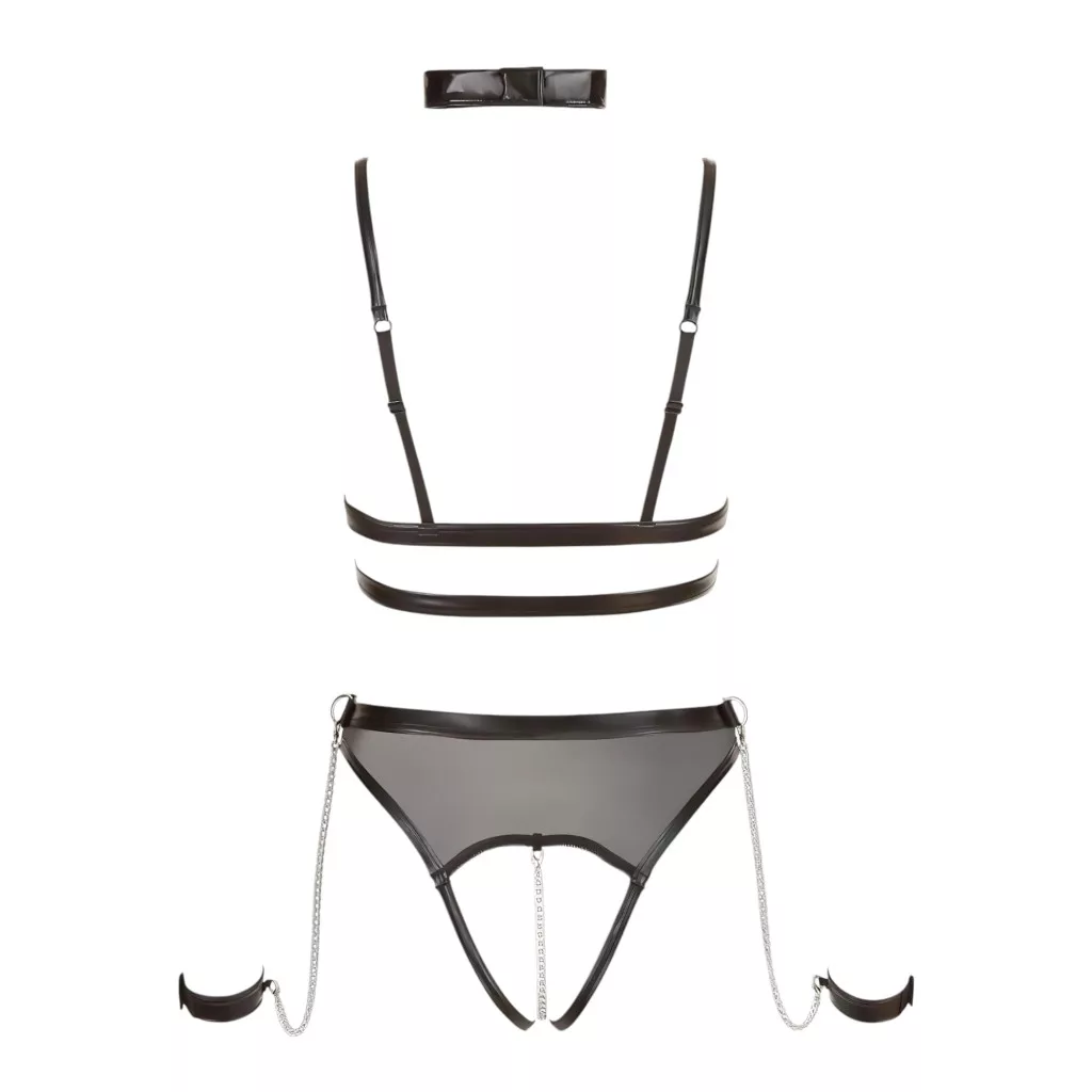 Cottelli Bondage - pántos nyitott body láncokkal (fekete)