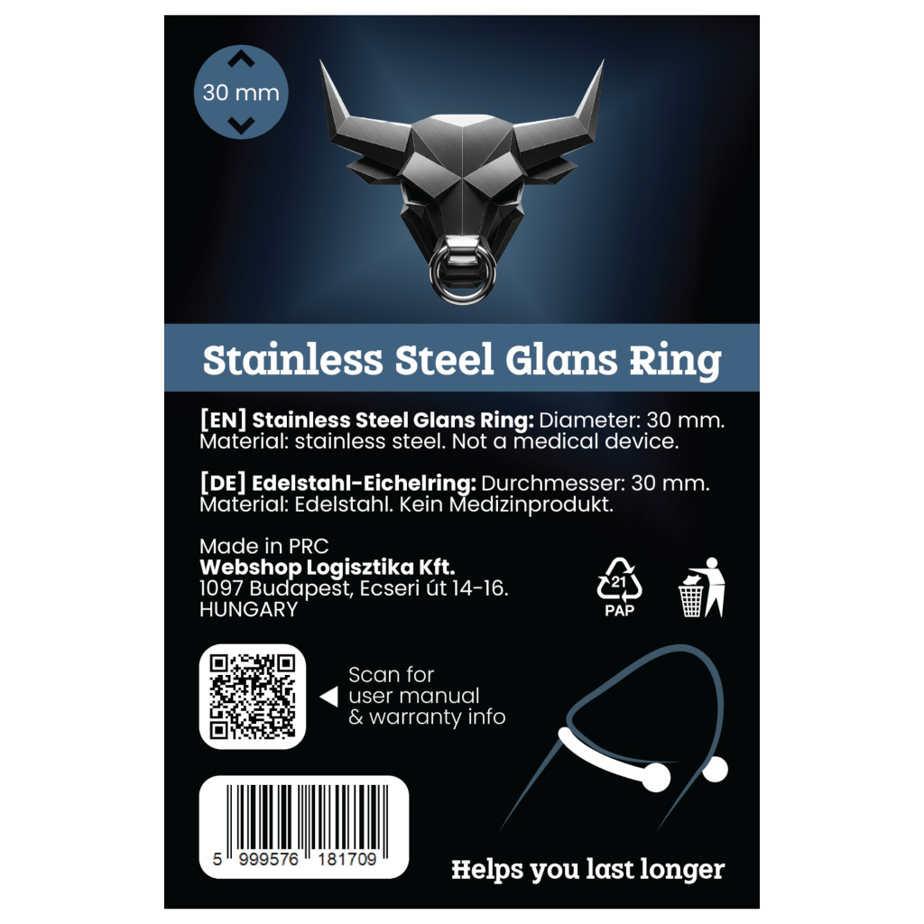 Rozsdamentes fém makkgyűrű - ejakuláció késleltetéshez (30mm)
